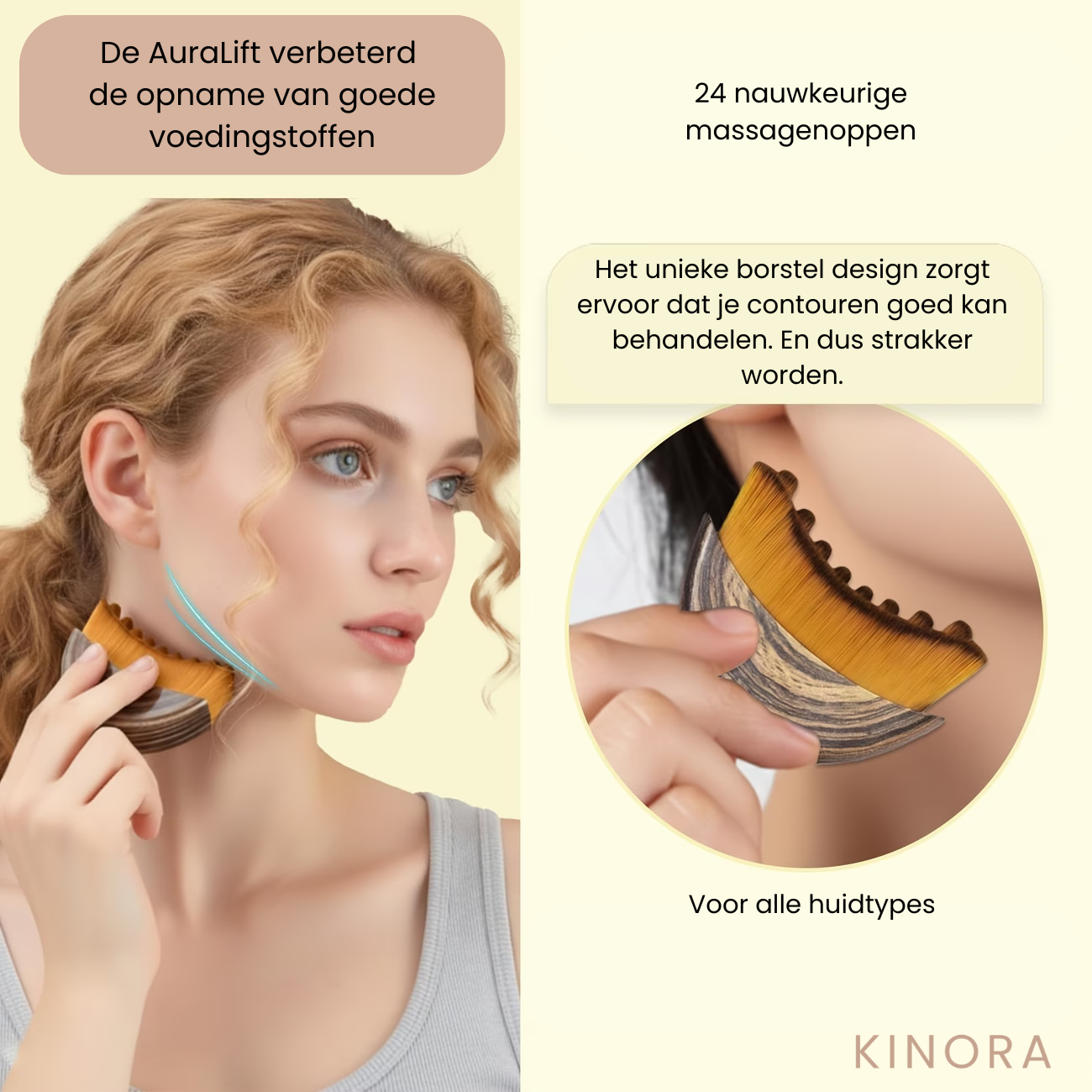 Door hem omhoog en naar buiten te bewegen wordt je huid licht gelift.