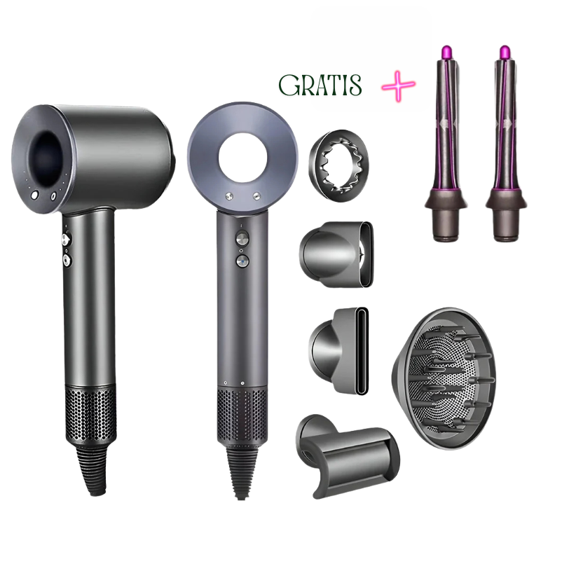 Een gewone föhn blaast hete lucht en maakt je haar droog en dof.